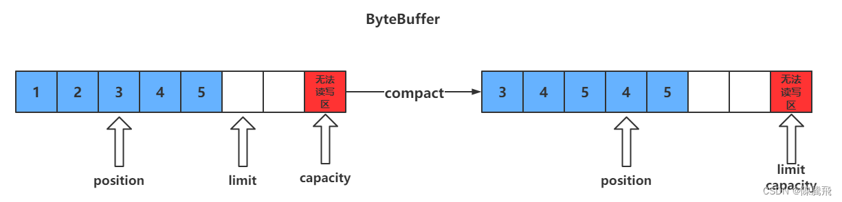 flip会使得buffer中的limit变为position,position变为0- 从 buffer 读取数据,例如调用 buffer.get()